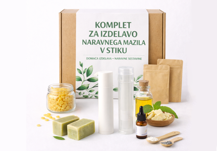 Če vas zanima izdelava naravne kozmetike, je komplet za izdelavo naravnega mazila v stiku odlična priložnost, da spoznate osnove ustvarjanja kozmetičnih izdelkov in pripravite svoje prvo domače mazilo za ustnice.
